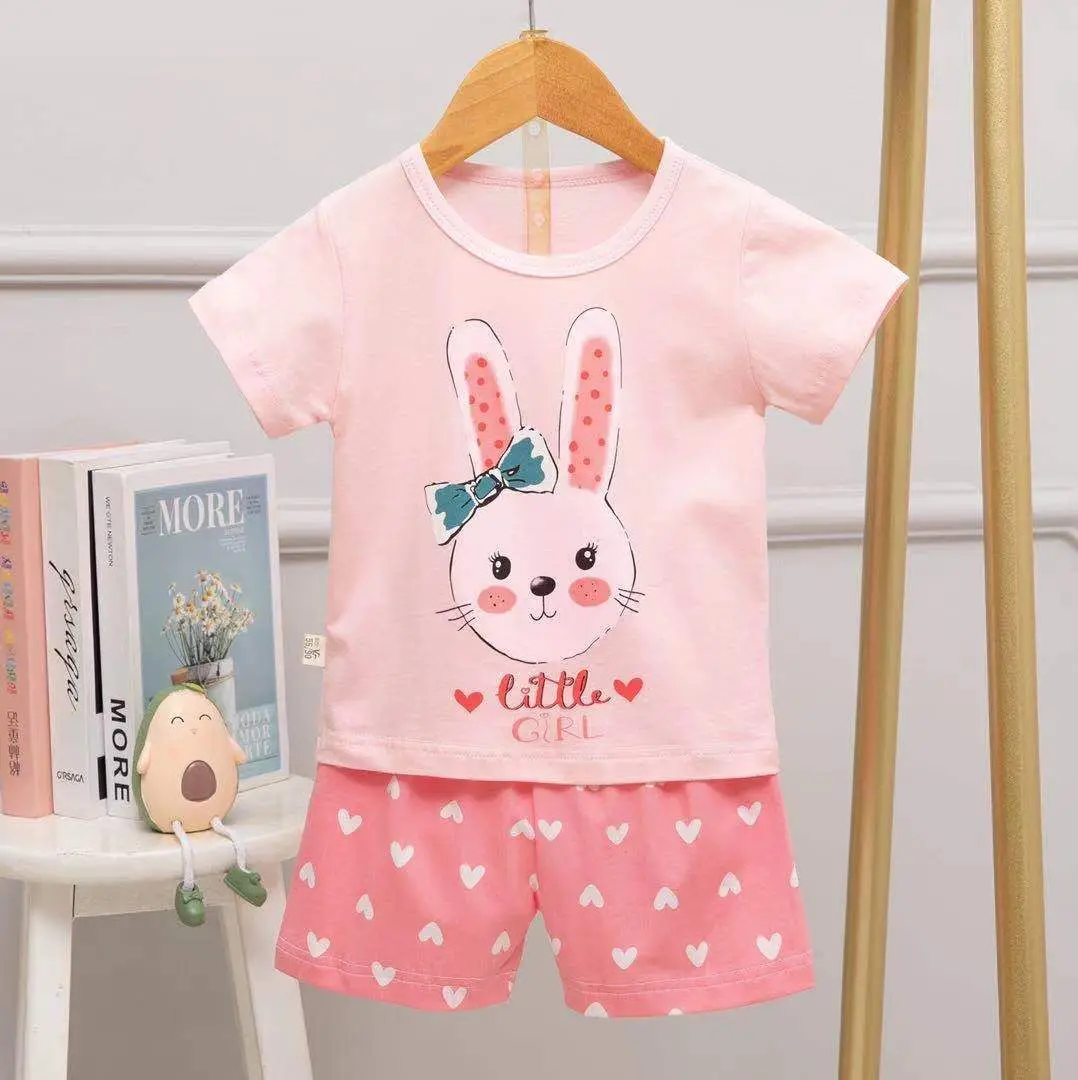 Name: Pijamas de algodón de verano para niños, camiseta de manga corta, pantalones cortos, ropa para adolescentes y niñas, camisón de dibujos animados, servicio de casa